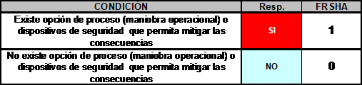 Los criterios para definir los niveles del Factor de Reducción de SHA(FRSHA), usados para el cálculo del Índice de Criticidad en SHA (ICSHA), se muestran en la siguiente tabla: