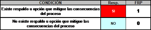 FRP: Factor de Respaldo del Proceso.